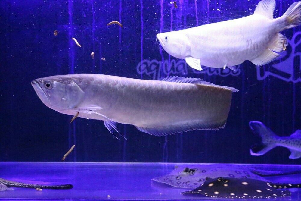 プラチナノーザンバラムンディ 2016年05月31日 久し振りにプラチナノーザンバラムンディをUPいたします。 最近ブラックアロワナと仲良し 50cm近いサイズになりました 人工飼料、冷凍餌、活き餌とすべて選り好みせず食べてくれる良い個体です。 目ダレ無し、アゴズレ無し、髭も長く完品です。 以前、ヒレが裂けたりしましたが、今は治っています。 画像より、実物を見てもらえば納得の綺麗な個体だ!っと思ってもらえると思います。