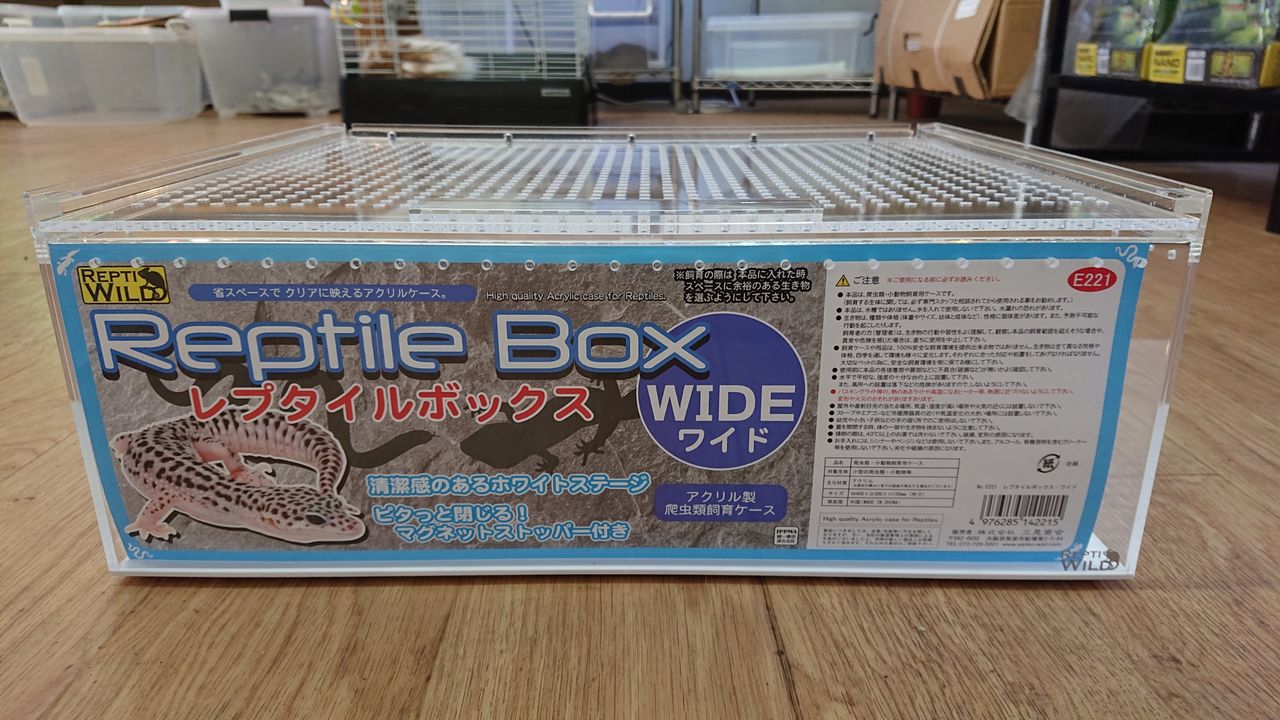 レプタイルボックス ワイド 新発売 2019年03月13日 サイズ幅400×奥行300×高さ155レプタイルボックスの約1,5倍のサイズです。 ヒョウモントカゲモドキ アダルトに広くスペースを与えれるサイズでオススメです。その他、爬虫類飼育ケージ、用品大量入荷しています。