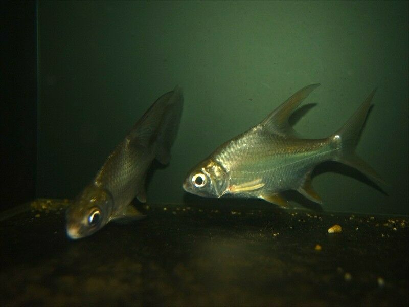 同サイズのレッドフィンバルブと混泳させていますが、明らかに背鰭、尾鰭の長さが違います。