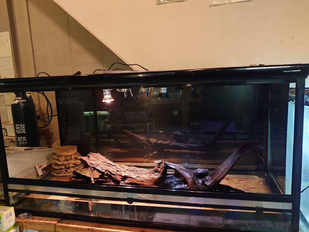 コウモリラン等の観葉植物を設置して、さらにカッコいいレイアウトになっていますので是非見てほしいです。