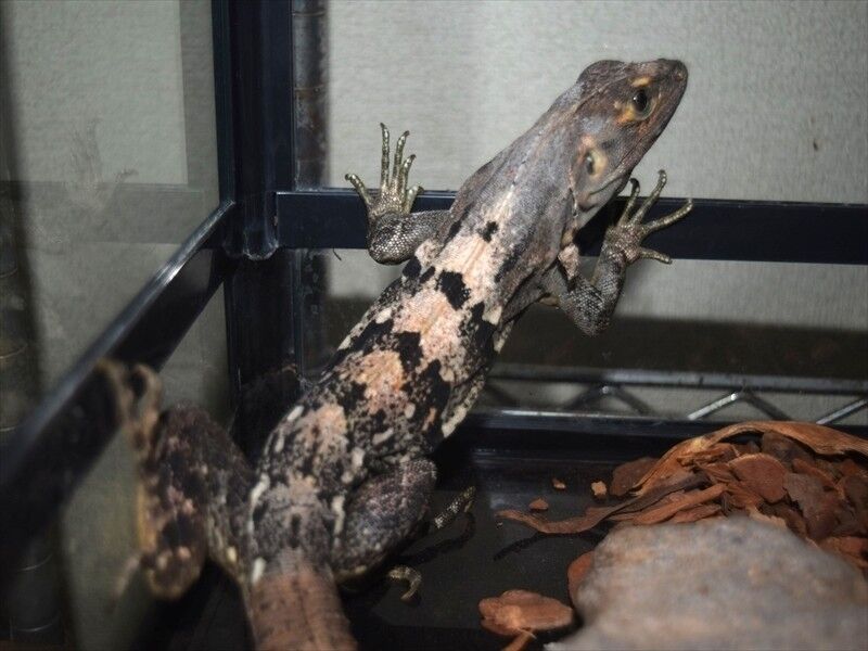 ツナギトゲオイグアナ入荷 2022年07月29日 迫力満点!ツナギトゲオイグアナ アダルト♂約1mカッコいい食性は植物食傾向の強い雑食です。こちらはヤングサイズの♀成長すれば上の♂とペアが組めるかも。派手さは無いけどシックな色合いですね。まだまだ入荷生体の紹介は続きます。