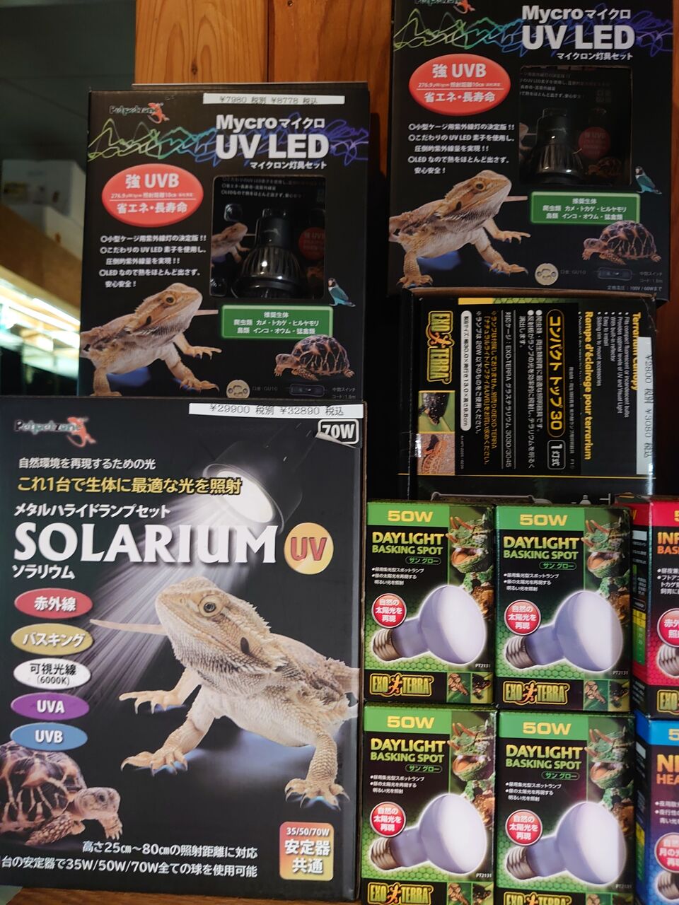 ソラリウム、マイクロUV 入荷 2023年09月10日 ソラリウム豊富な紫外線量と明るさ、赤外線による保温までカバーされており効果抜群!リクガメの食欲と運動量が増します。マイクロUVコンパクトで取り付けやすく、なんといっても長寿命オススメのライト入荷しています。