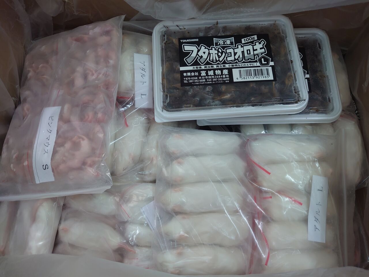 活コオロギ、ワーム入荷 2024年06月02日 2日 日曜日コオロギS、M、ワームが入荷いたします。コオロギSはロスがでるため、少なめの入荷です。お求めの方はお早めに。その他、冷凍コオロギ、乾燥コオロギも在庫しておりますのでご来店お待ちしております。
